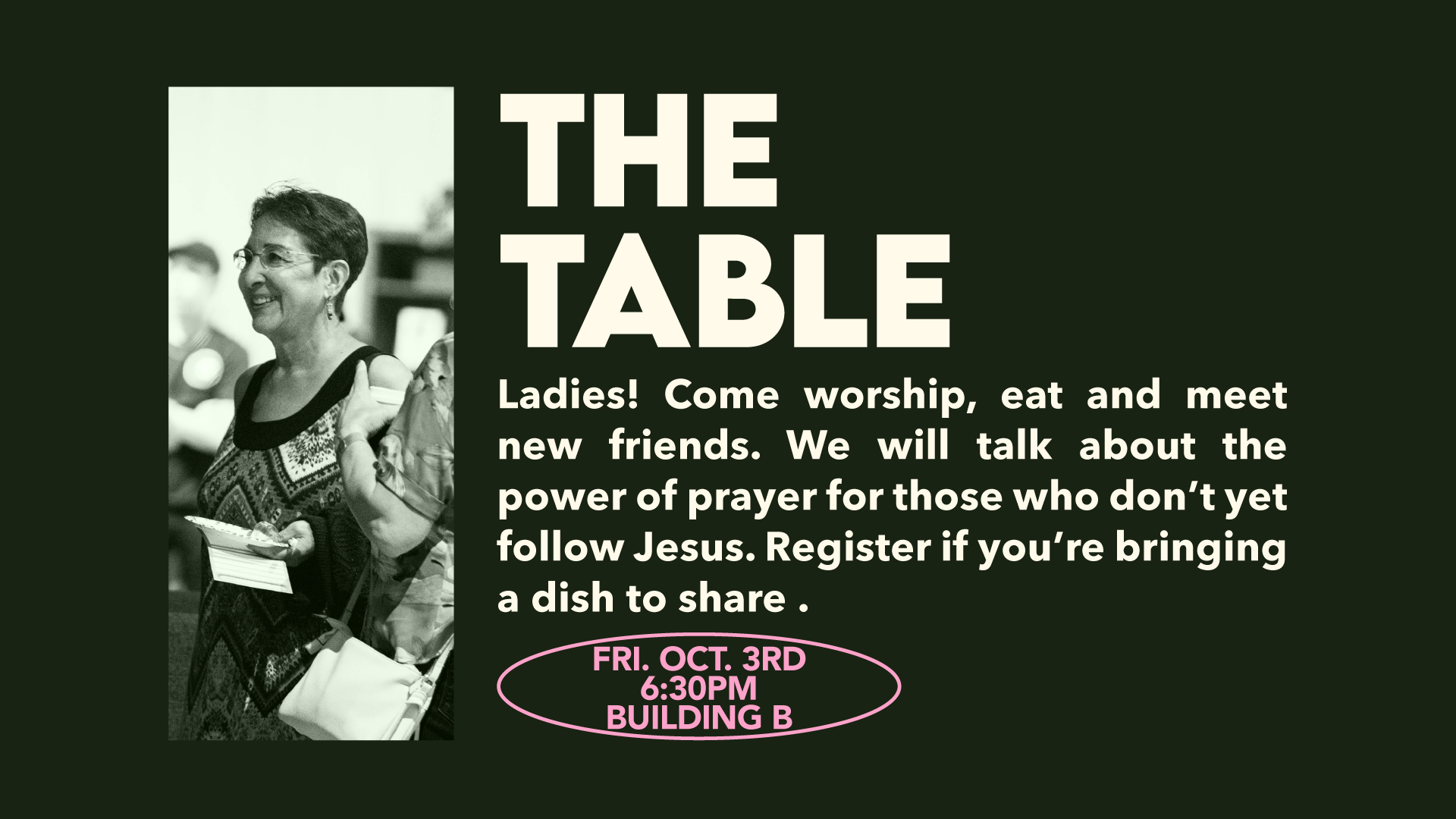 Ladies, you are invited to The Table — October from 6:30-8:30 p.m., on Fri., Oct. 3, in Life Community Church's Building B at 2140 Broadway.