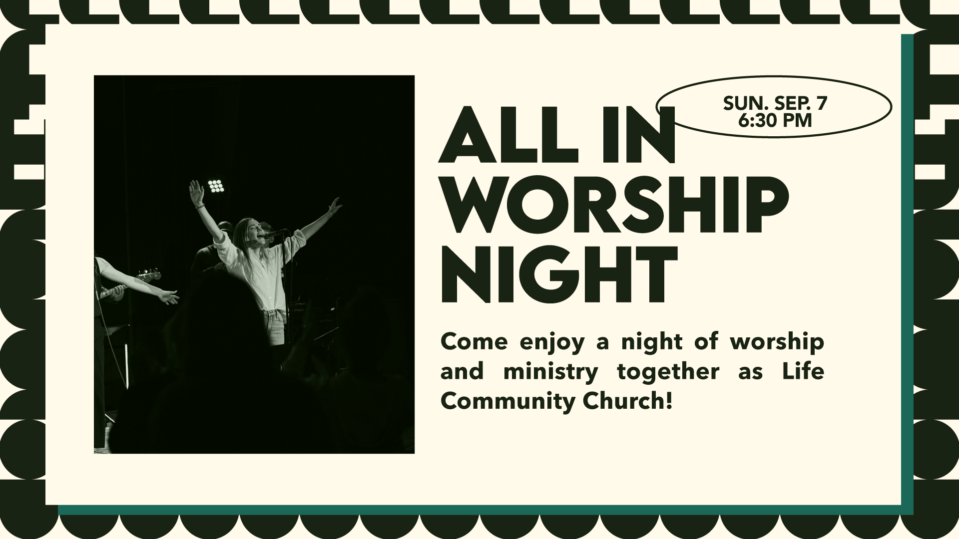 Whether you need encouragement, healing, or simply want to draw closer to Jesus, this is a night to surrender, receive and go all in with Him.