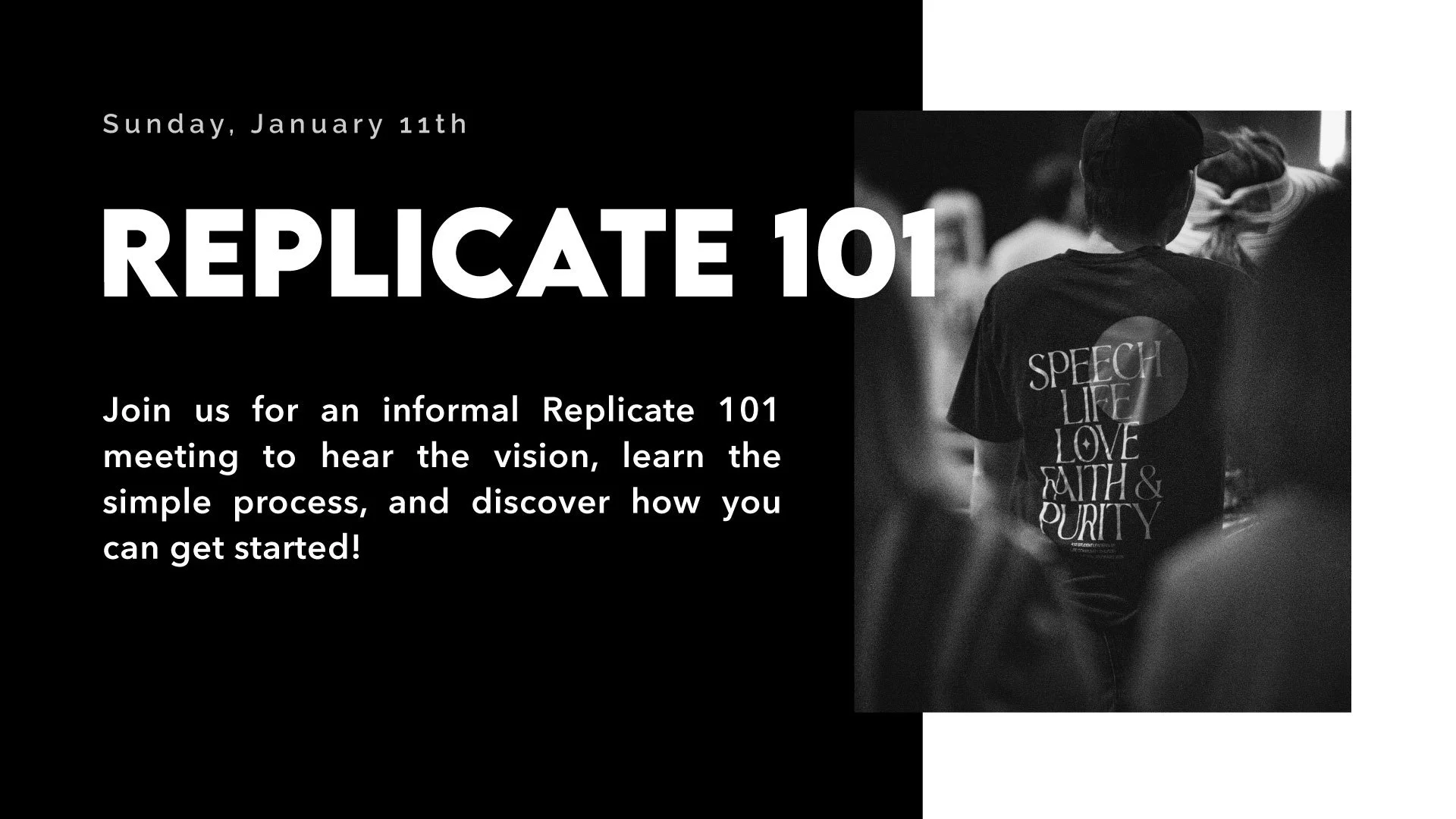 Imagine a church full of disciples who make disciples, growing deeper in Christ and multiplying His impact everywhere we go. That's the vision for Replicate Groups: intentional discipleship for accelerated spiritual growth, obedience to Jesus' command, and lives transformed to reproduce faithful followers.